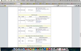 In this circumstance, not quite as relevant to the specific awards/nominations data, but felt this was a quite interesting summary of the other, perhaps less superficial achievements which summarise and document Wes' career- definitely something I will return to in the later design and print process.